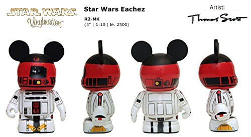 -. Binding : Toy -. Brand : Vinylmation -. EAN : 0707571927247 -. Feature : Series - 2014 Eachez / Name - Star Wars Eachez - R2-MK / Artist - Thomas Scott / Disney's Vinylmation are not just a new collectible bearing the Disney brand. Disney's Vinylmation are the product of talented Disney artists allowing themselves the gift Walt created, the gift to Dream and Create. These are Limited Edition series created every year and once they are gone, they are gone. / Vinylmation is the original vinyl collectible available exclusively at Disney Theme Parks and were an instant hit. When the Park Series 1 was released in December of 2008 they featured art and designs inspired by the Disney Parks and available exclusively at select Disney Theme Park merchandise locations. -. IsAdultProduct : 0 -. Label : Disney -. Manufacturer : Disney -. PackageQuantity : 1 -. ProductGroup : Toy -. ProductTypeName : TOYS_AND_GAMES -. Publisher : Disney -. Studio : Disney -. Title : Disney Star Wars Eachez - R2-MK Vinylmation 2014 Eachez Series By Artist Thomas Scott -. UPC : 707571927247