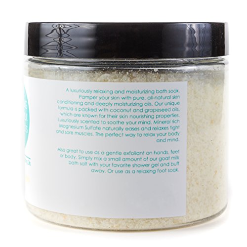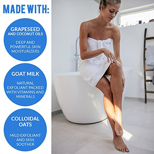 - PREMIUM, 100% FRESH ingredients. Infused with goat milk (helpful for skin conditions such as eczema and psoriasis) a natural skin conditioner loaded with nutrients to nourish your skin, epsom salts (magnesium sulfate) which assists in detoxifying the skin, and powdered colloidal oats to soothe dry, sensitive skin. Packed with coconut oil and grapeseed oil to hydrate and protect skin, while rejuvenating it with vitamins and minerals