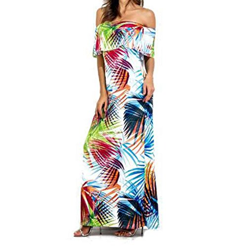 -. Feature : Occasion: evening, prom,cocktail, vacation, wedding / Charming:wear the right dress can show the sexiest and charming of you / New Fashion:The off-the-shoulder and ruffle design are really head-turning / Elasticity:the elasticity printed long dress will fitted your body better,show your sexy curve / Hand wash or machine, hang or line dry