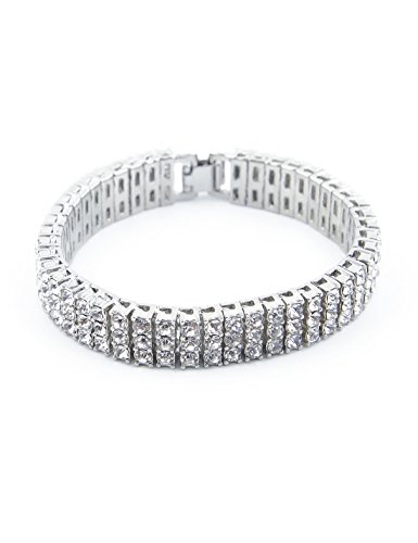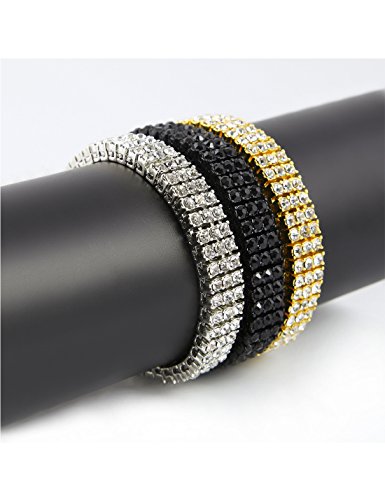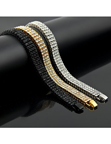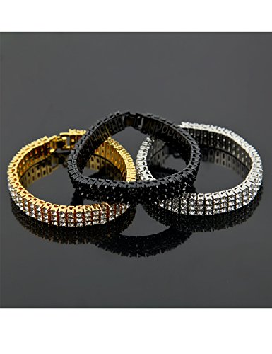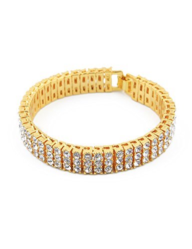 (Sylva Wolves)/Accessories/Belts Buckles/DIRECT FROM USA/Hip Hop Charm Bracelet Gold Plated 3 Row Fully Iced-Out CZ Rhinestone Chain Bracelet Jewelry