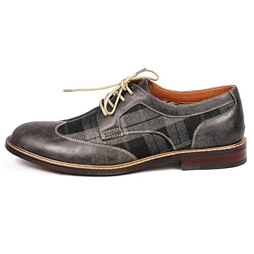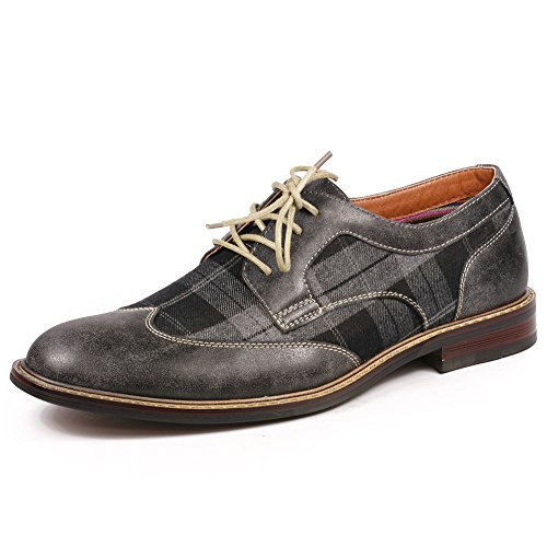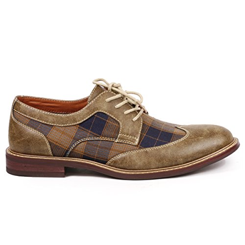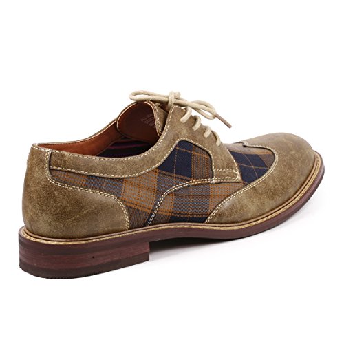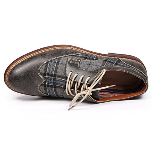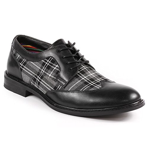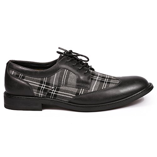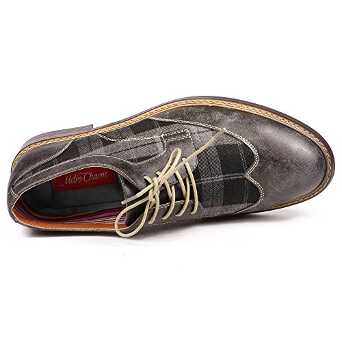 Metrocharm MET525-1 Men's Plaid Lace Up Wing Tip Classic Oxford Dress Shoes