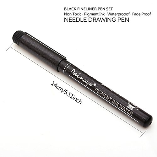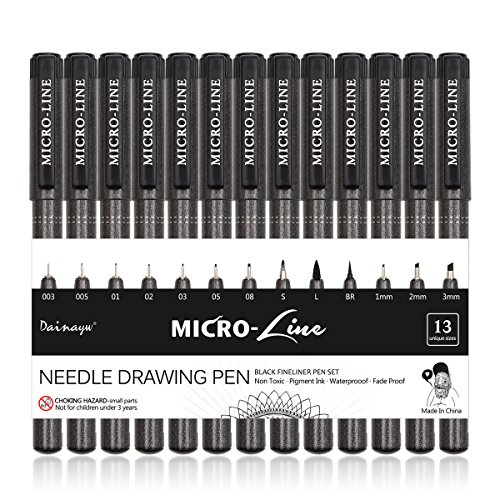 Dainayw Black Micro-Pen Fineliner Ink Pens - Assorted Fine Point, Brush & Calligraphy Tip Nibs,Archival Ink Micro-Line For Artist Illustration, Technical Drawing, 13 Pack