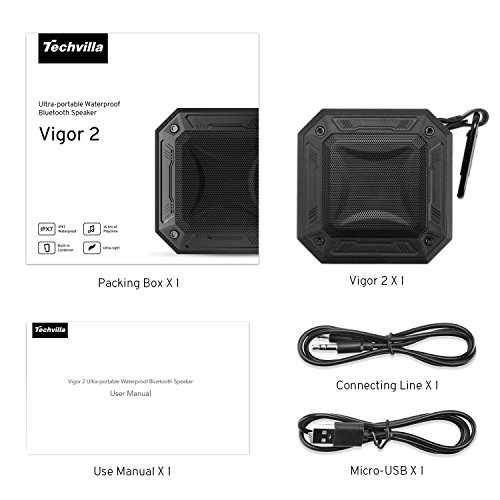 Bluetooth Lautsprecher Wasserdicht Techvilla IPX7 Wasserfest Staubdicht Tragbar Wireless Portable Bluetooth 4.2 Speaker mit 16 Stunden Spielzeit, Verstarktem Bass und Mikrofon