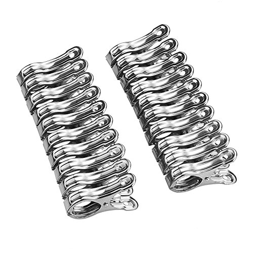 Eightnoo Stainless Steel Rust-proof Open Clamp Hanging Clothes Pin Towel Clips Clothes Pins 5.5 cm Hanging Clips for Daily life , Office , kitchen Use, Pack of 20