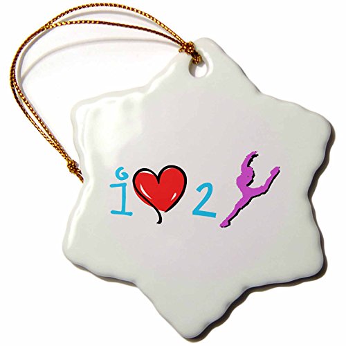 3dRose orn_16953_1 I Love to Dance-Snowflake Ornament, Porcelain, 3-Inch