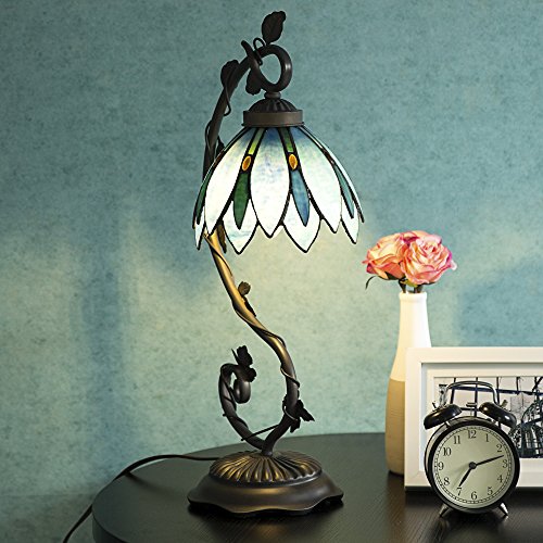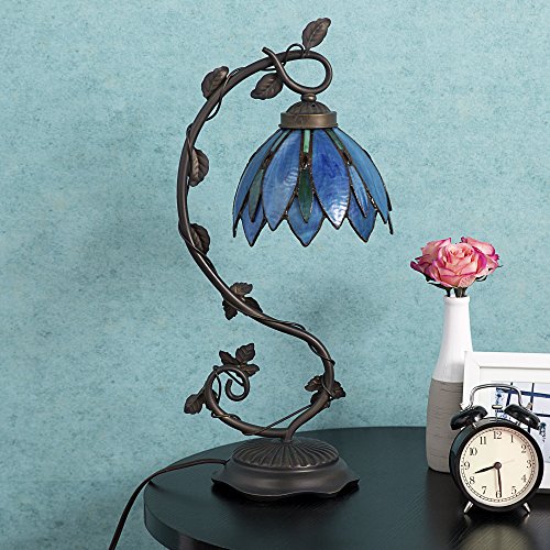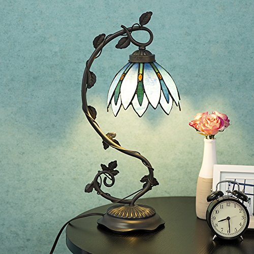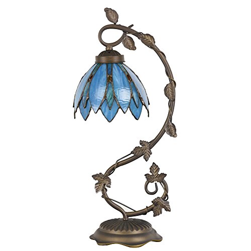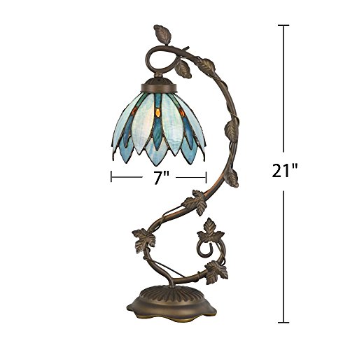 Cloud Mountain Tiffany Style Arched Table Lamp Light Blue Floral Leaf Lotus Shape Stained Glass Desk Lamp Home Decor Lighting with 7" Lampshade