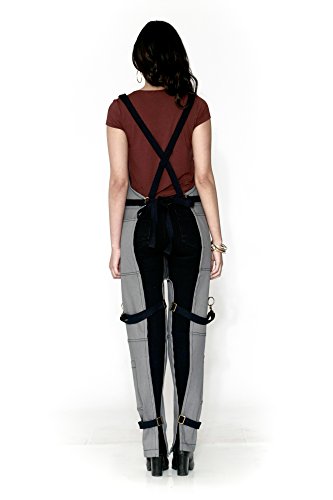 Under NY Sky Full Split-Leg Apron - Cross-Back - Slate Gray Denim - Black Leather