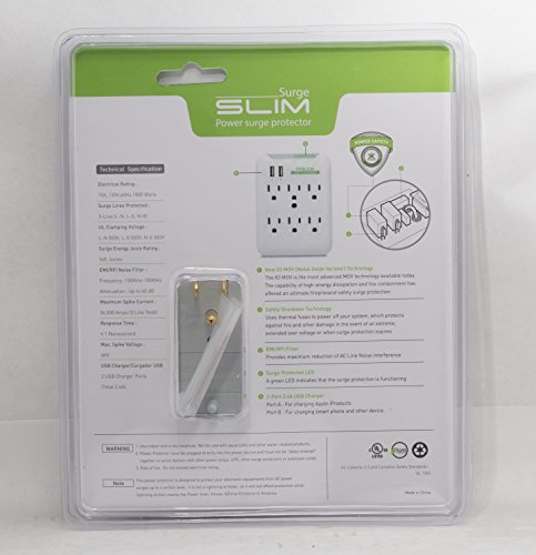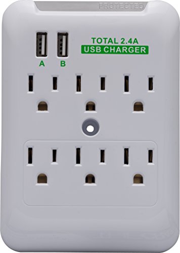 Cablelera ZPFCDHMF-62 6 Outlet Surge Wall Tap 2 USB