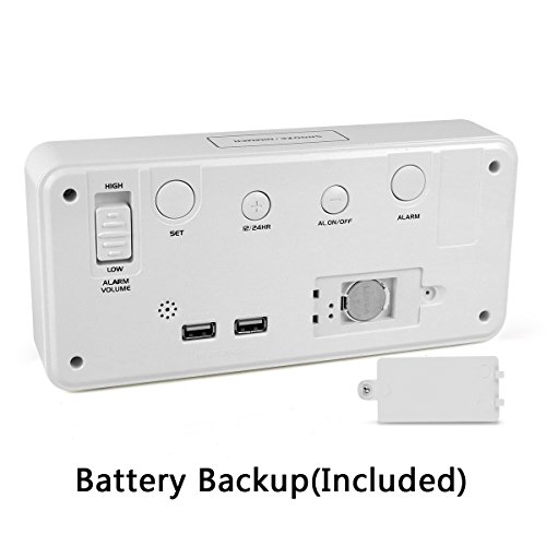 Battery Back-up Battery backup enables to memorize time, alarm and calendar during electric power failures, to make the clock work please plug the included charger.
