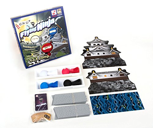 Studio : KiddyKiddoUSA Publisher : KiddyKiddoUSA Binding : Sports Product Description Flying Ninja is a high energy game that naturally trains focus attention span in children ages 4 and jump through suspenseful and engaging game play. HOW TO PLAY: 1. Build the castle 2. Place treasure cards and mission cards inside the castle walls 3. Hold down your Ninja to fly into the castle walls and land within the cards’ boxes. Whoever steals the most treasure wins! 0