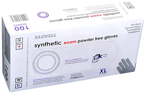 Daxwell Synthetic Exam Gloves, Powder Free, Extra Large, White (Box of 100)