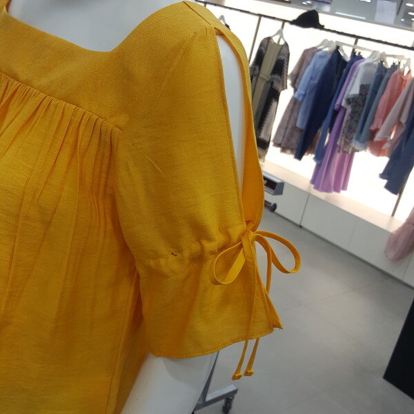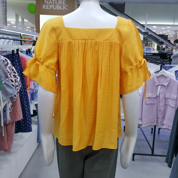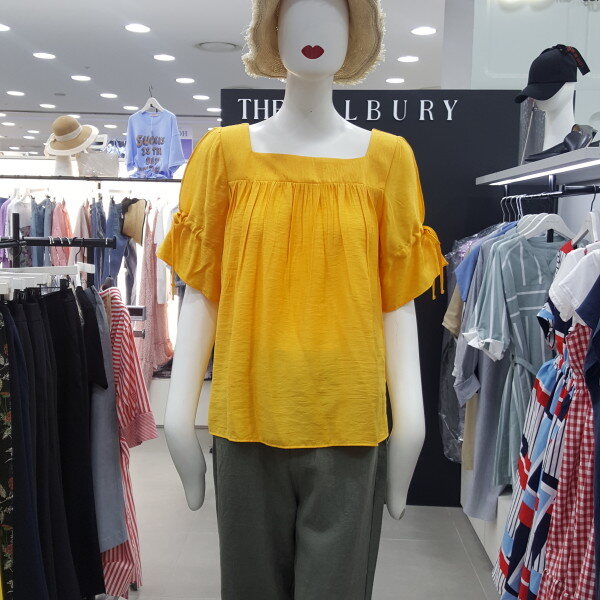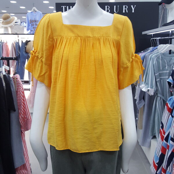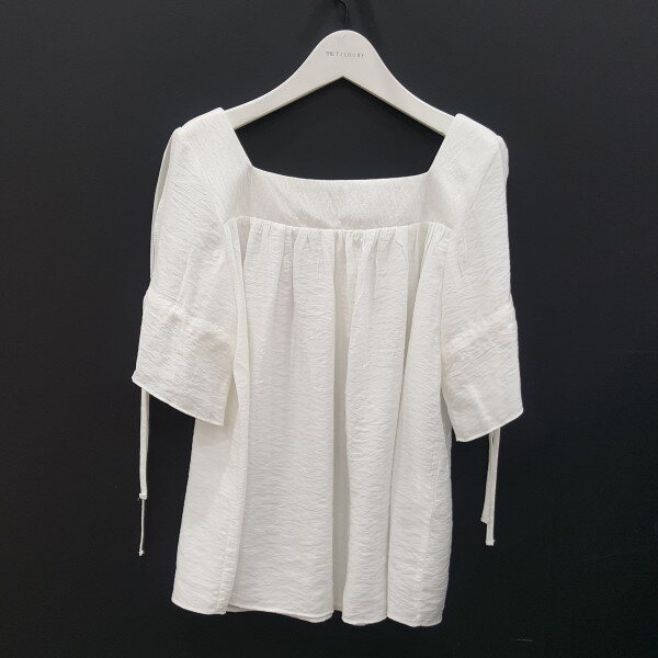 어깨선이 돋보이는 디자인의 블라우스입니다 네크라인이 사각으로 쇄골이 드러나 여성스럽고 디양한 디자인과 연출하기 좋은 아이템입니다