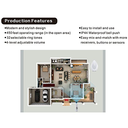 450 FEET OPERATING RANGE. LOUDEST CHIMES and RINGTONES with 4 level adjustable volume