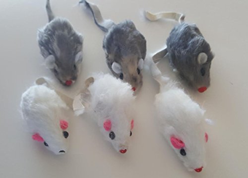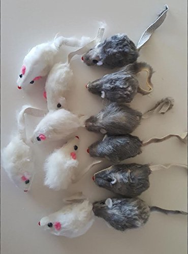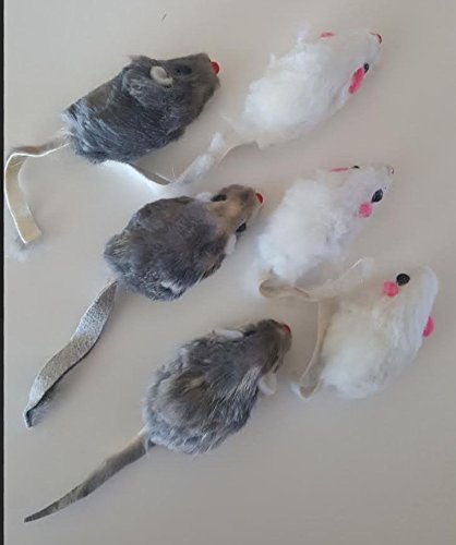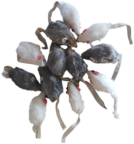 -. Feature : Real rabbit fur cat toys; rattles; natural colors: 6 white & 6 grey / Be safe ALWAYS watch your cats with all cat toys / Each mouse measures approximately 2 inches long / Brings out the natural hunting instincts of cats and kittens / Tons of fun; delight, egage and entertain your feline friend; imported