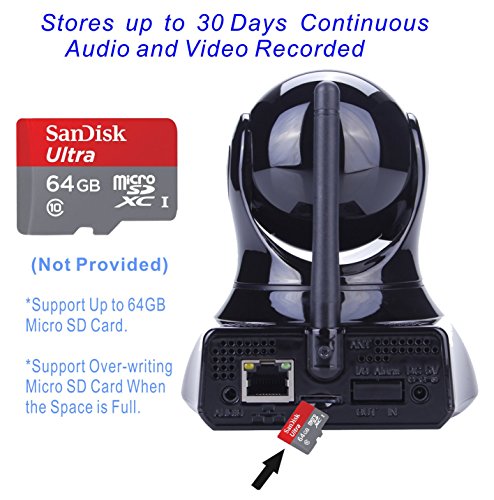 Super clear night vision up to 30 feet. Intelligent motion detection alarm/alert and video recording for your home/business security; support real time video recording and micro SD card recording; playback the images captured and video recorded on the App or PC anytime.