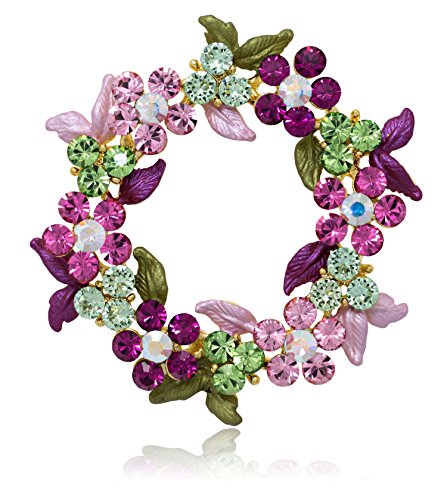 AKIANNA GOLD-TONE SWAROVSKI ELEMENT CRYSTALS WREATH PIN BROOCH MOTHER'S DAY PINK