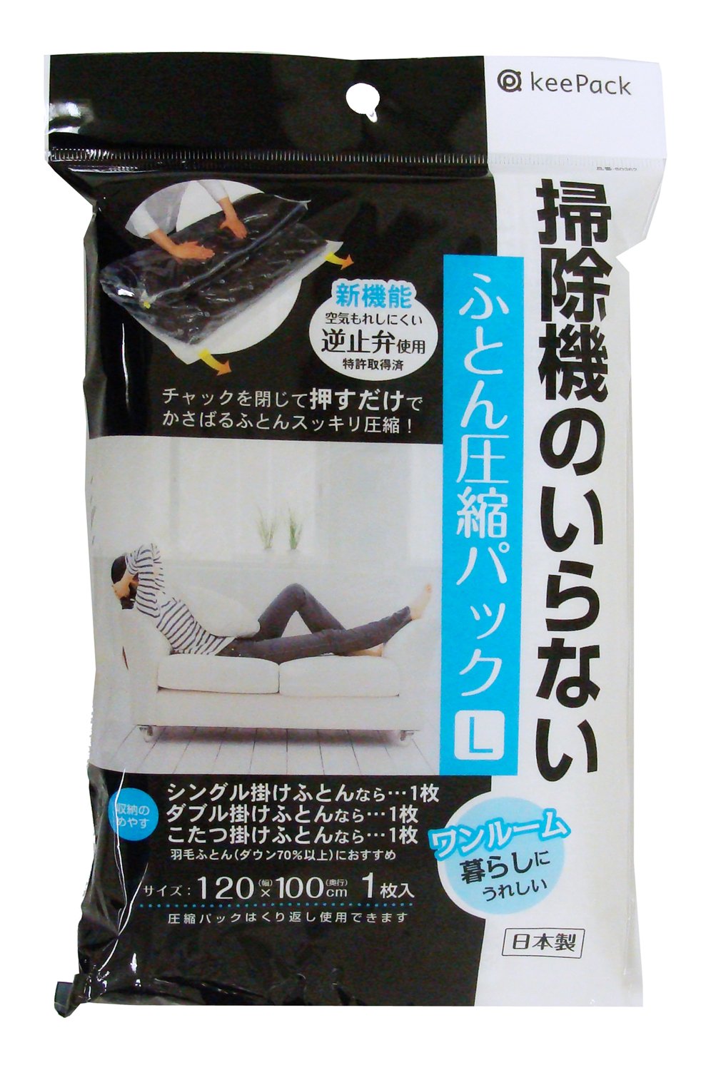 ● [Product Description] ● "KP Vacuum Cleaner Futon Compressed Pack L" is a futon compression bag that does not require a nice vacuum cleaner for living in one room.