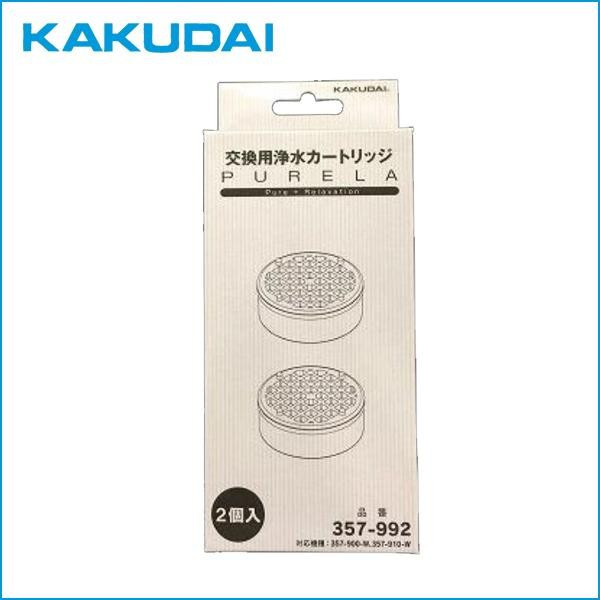 浄水シャワーピュアラ(357-900-W、357-910-W)用のカートリッジです。塩素除去でやさしい水に生まれ変わります。 製造国:日本 素材・材質:PPろ材:亜硫酸カルシウム・不織布 ※サプライヤー直送品 ご注文後3~4営業日後の出荷となります【商品名】カクダイ ピュアラ用浄水カートリッジ(2ヶ入り) 357-992