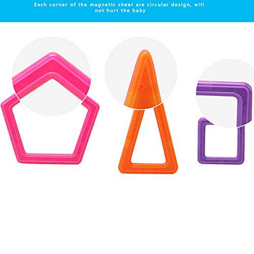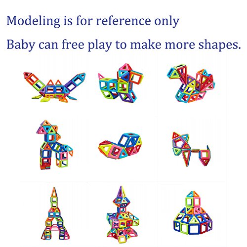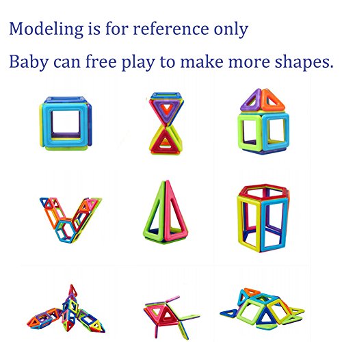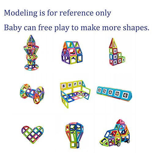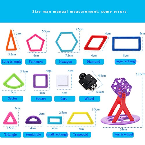 -. Feature : Our magnetic blocks toy set which comes in a beautiful variety of magnetic tiles colors that appeal to boys and girls of all ages,can be combined into Many patterns, such as: House, car, ball and more.Compatible with other similar-size tiles. Kids learn colors and shapes while playing, develop their creativity and mind in new ways. / The Magnetic Building Blocks is made from non-toxic, high quality abs plastic and magnet. Smooth edge of each tile will never hurt baby's little hands. Very safe to play with. / This is an educational toys. These magnet toys have unique shape, free combination and various of colors, which can help to develop children's fine motor development, cognitive development of color, teamwork ability, artistic cognitive, sensory, cognitive ability, practical ability, imagination and creativity. DIY is always a great thing especially for kids, they will feel very happy when finished making a cute item by themselves. / If you want your child full of confidence and takes more chances, you should get this building block toy now! Through experimenting, taking risks and enjoying the pleasant feeling of achievement, your little ones will learn how to try and work for what they want to succeed in. / Totally 139pcs: including Large Rectangle x 4, Long Triangle x 8, Pentagon x 2, Square x 25, Sector x 4, Semicircle x 2, Hexagon x 2, Trapezoid x 4, Triangle x 20, Diamond x 6, Small Rectangle x 8, Card x 42, Wheel x 2, Ferris Wheel x 1. Let your kids explore the world of different shapes and colors.