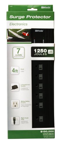 Woods 041600 7-Outlet Surge Protector Power Strip with 4-Foot Cord, 1250 Joules of Protection