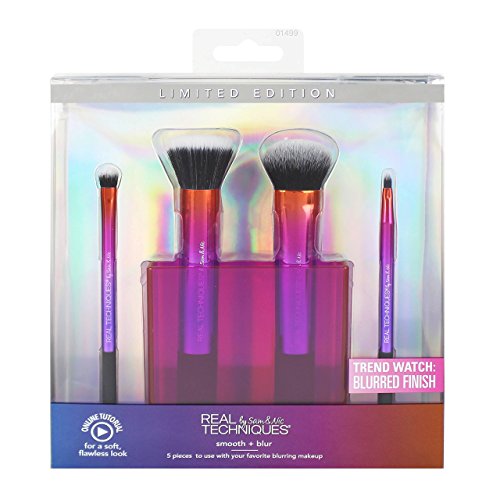 Real Techniques Smooth + Blur - 5 Piece Set which Includes 4 Brushes and a Brush Cup