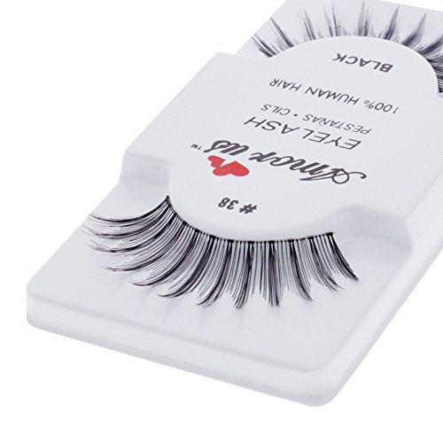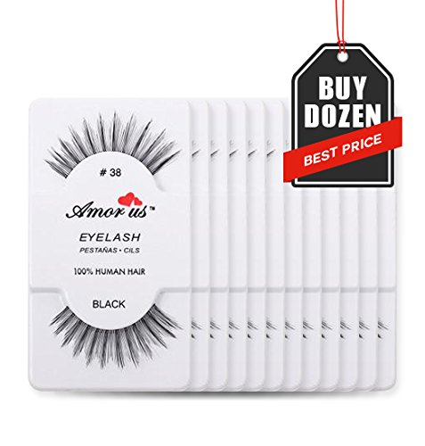 Amorus 12 Pairs Multipack #38 False Eyelashes Dozen Set 100% Natural Hair Black Handmade Comfortable Reusable Fake Lashes Pack