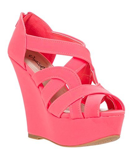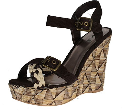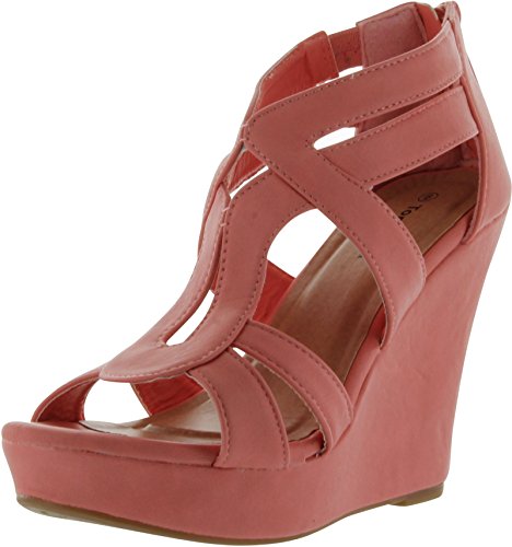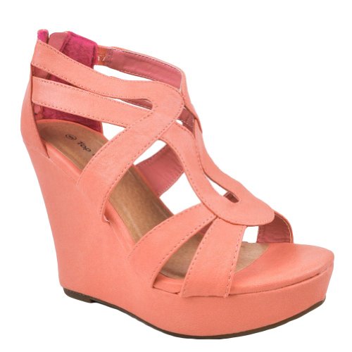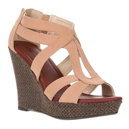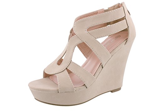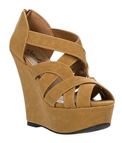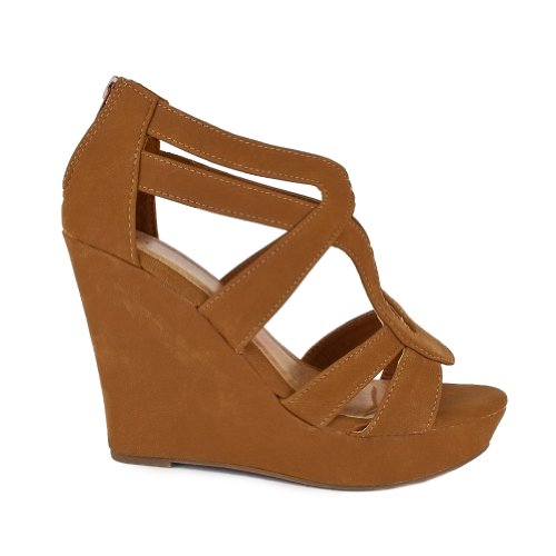 Add chic style to your wardrobe with these fabulous platform wedges! It features open toe front, strappy construction at vamp, stitching details, covered platform, and wedge heel. Finished with lightly padded insole and rear zipper closure for easy on/off.