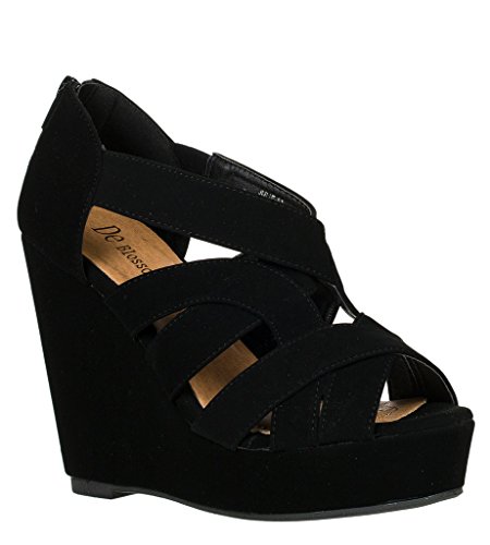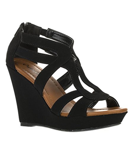 Strappy Open Toe Platform Wedge,Lindy-03 Black 8
