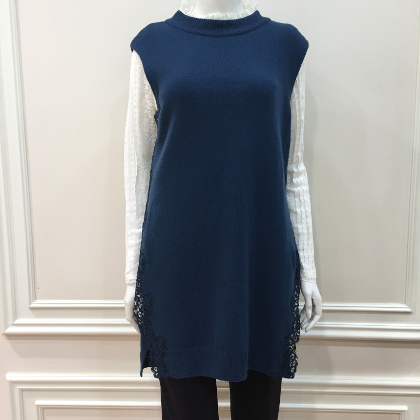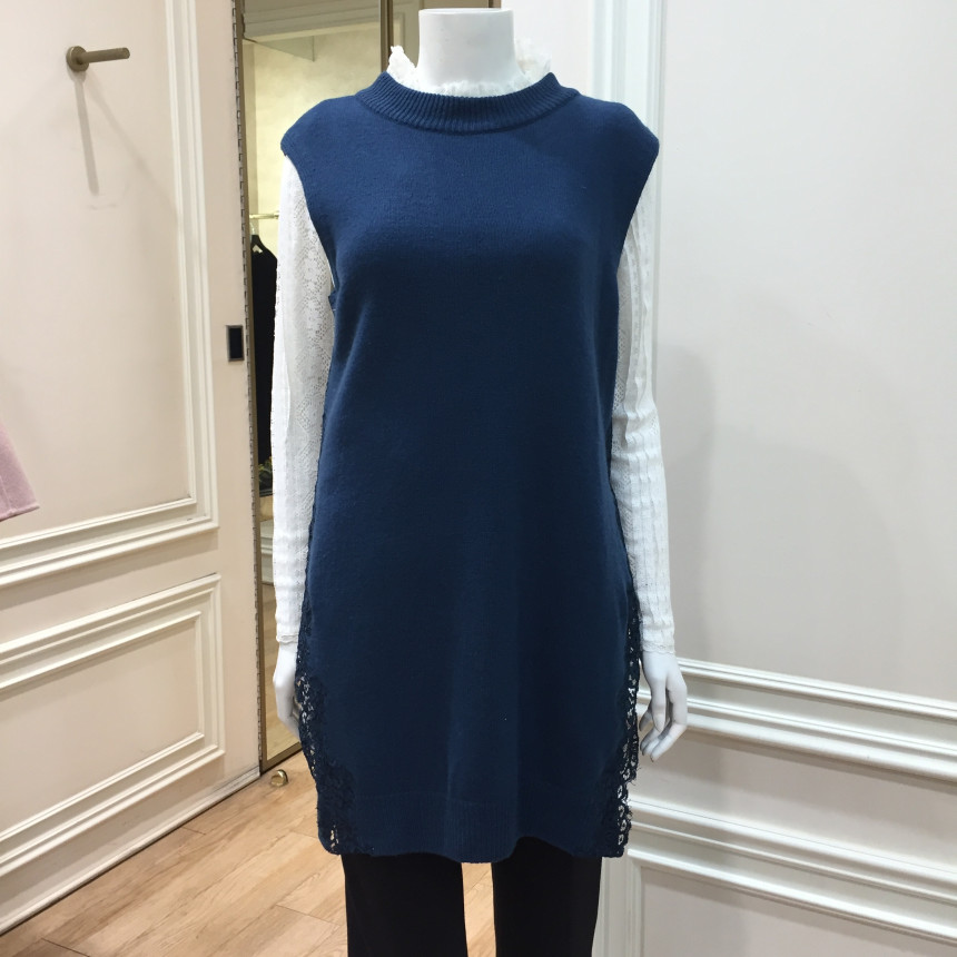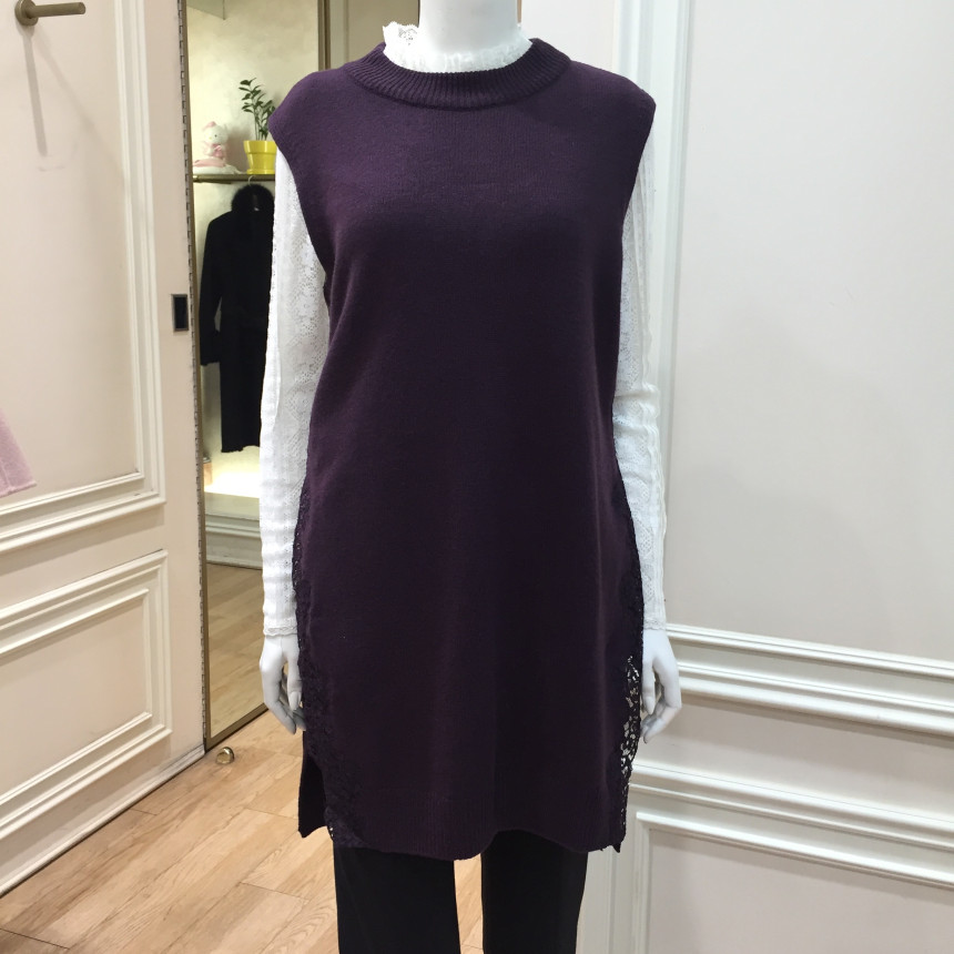 - 옆선 트임의 레이스배색이 여성스러우면서도 고급스런 느낌을 주는 롱베스트입니다.
