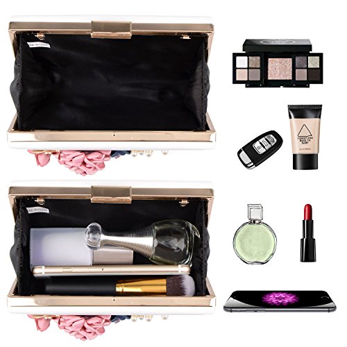 The glamorous evening party clutch features allover sparkling crystals on the front of this chic shaped clutch and has metal frame construction with clasp on the top. It features magnetic hasp closure and detachable chain which offers versatile carrying options as handbag, clutch, a shoulder bag or a cross-body bag. The crystal handbag is so royal, noble and brilliant that it will be a perfect status symbol and a bold gift for femininity.? Features: 1.Covered with a fully beaded rhinestones, metal hardware and silk fabric lining. 2.Metal frame construction with clasp on the top. 3.Crystals and rhinestones ornament, add more sparkle to your dress. 4.An interior slide pocket, which is spacious enough to fit your daily essentials, such as cellphone, lipstick, compact mirror, cards, cash, cosmetic, keys. 5.Perfect for wedding party, family reunion, prom, banquet and evening cocktail party and so on . 6.Stylish: Elegant, Bling madness, Glamorous, Fashionable.? 0 |