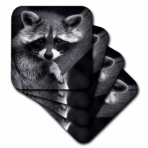 3dRose cst_173001_3 Baby Raccoon Black and White Digital Image Ceramic Tile Coasters, Set of 4
