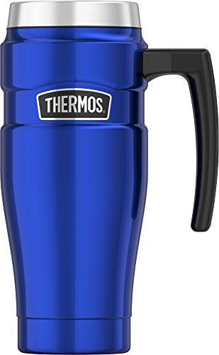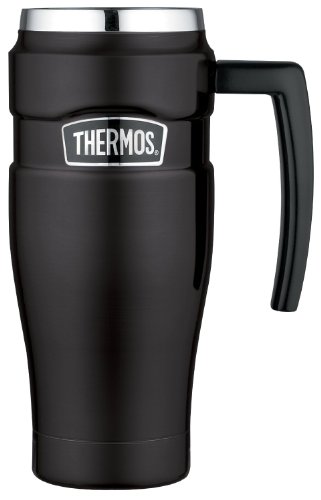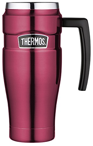 The Thermos Stainless King Vacuum-Insulated Travel Mug, 16oz (Silver) is the ideal choice for people on the go. It is built to last and loaded with features to make for a more enjoyable drinking experience. Thermos vacuum-insulation technology virtually eliminates temperature change within the beverage container by creating an airless space between the 2 stainless steel walls. The superior insulated container performs better than others. This travel mug keeps beverages hot for 5 hours or cold for 9, making it a great choice for long days out and about or in the office. Constructed with double wall stainless steel, this 16 ounce travel mug is virtually durable, yet its sleek design is both eye-catching and functional. The contoured body shape is easy to grip and fits most automobile cup holders and is single serve compatible. For tea drinkers, a built-in tea hook is just the ticket to brew tea on the go. The tea hook can also accommodate most loose leaf infusers.Feature