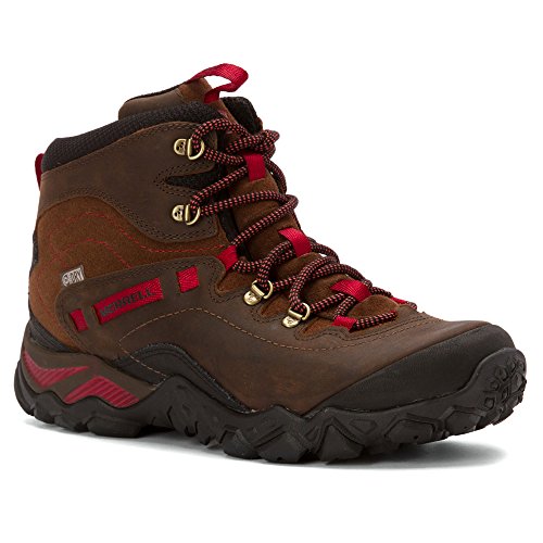 FEATURES of the Merrell Women's Chameleon Shift Traveler Mid Waterproof Boot Full grain leather and suede upper Traditional lace closure Bellows tongue keeps debris out Ace single density removable footbed Molded nylon arch shank Merrell In-Board Compression molded EVA footframe provides cushioning Merrell air cushion in the heel absorbs shock and adds stabilityFeature