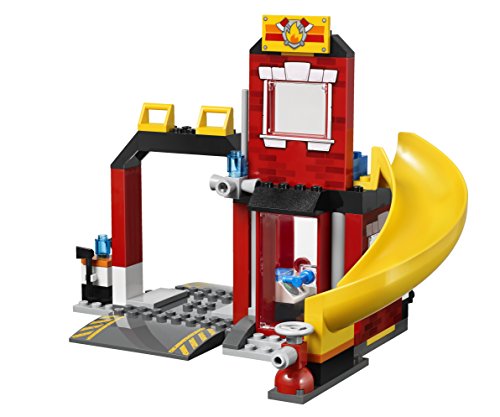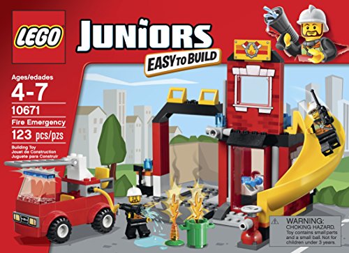 Sound the alarm! A trash can is on fire and it's time to call in the brave firefighters! Slide down the fire station chute, jump in the fire truck and get that fire under control! This fun, fire-themed set is perfect for first-time LEGO brick builders and features a big fire station with an office and a bed for a firefighter to take a nap on, an Easy to Build fire truck with fire hose and lots of colorful bricks. The LEGO Juniors Fire Emergency set also includes inspiring building instructions that will motivate your child to build and create endless play possibilities. Includes 2 firefighter minifigures.