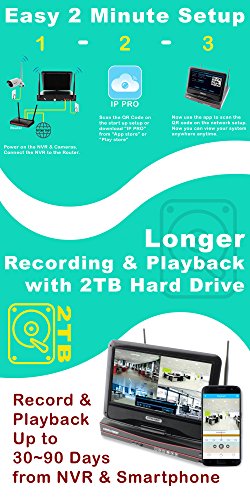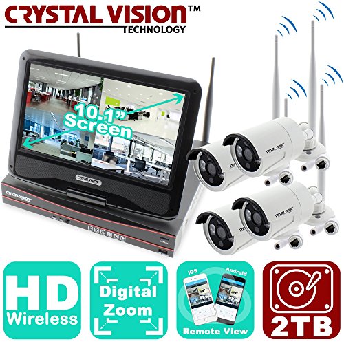 Crystal Vision CVT9604E-3010W All-in-One TRUE HD Wireless Surveillance System NVR CCTV w/ 2TB HDD, Built-in Monitor & Router, Camera Auto Pair