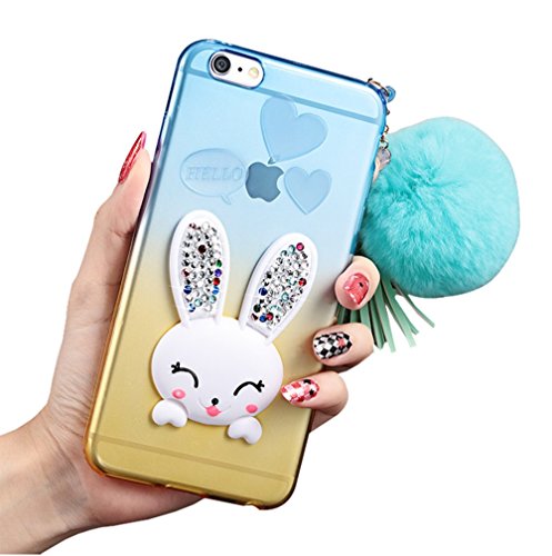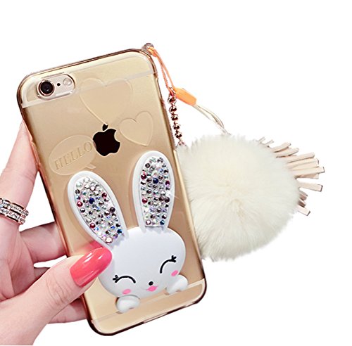 Dreams Mall(TM)Hot Cute Rabbit Style with Diamond & Hairball & Tassel Soft Case Cover for Apple iPhone 6 Plus/iphone 6S Plus 5.5 inch-Purple