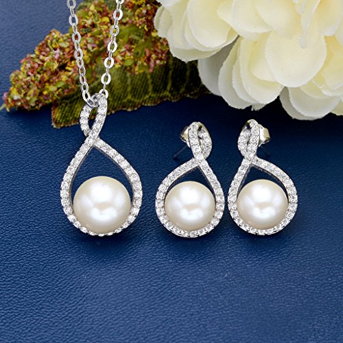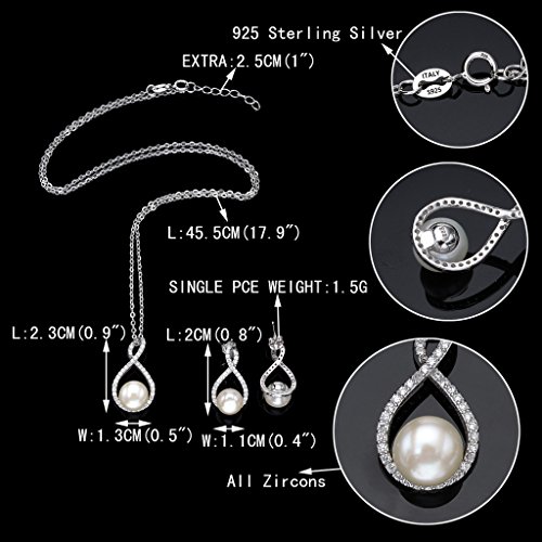 Necklace Length: 45.5cm(17.9")-48cm(18.9"), Earring Size: 1.1cm(0.4")by2cm(0.8"), One Earring Weight: 1.5g. Necklace Pearl Size: 10MM. Earrings Pearl Size: 8.5MM