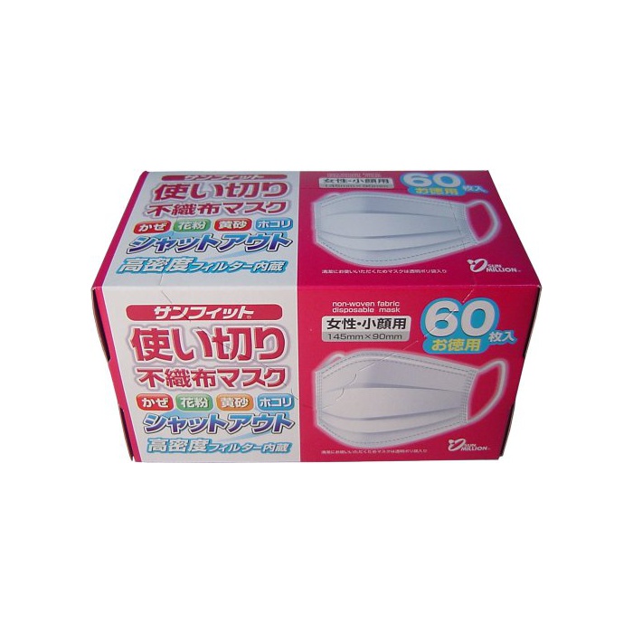 원본상품명: サンフィット 使い切り不織布マスク 女性小顔用 60枚入り