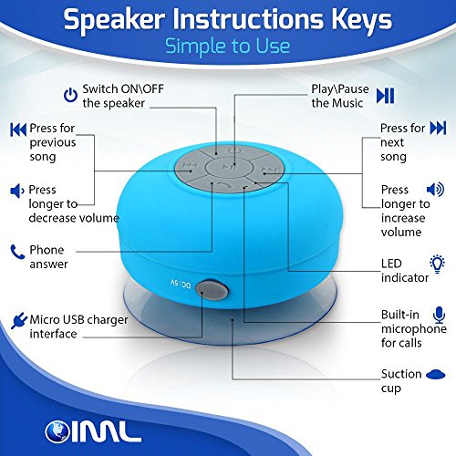 -. Title : oiml Bluetooth Shower Speaker, Water Resistant Wireless & Hands-Free Speaker Phone with Suction Cup, Compatible with All Bluetooth Devices