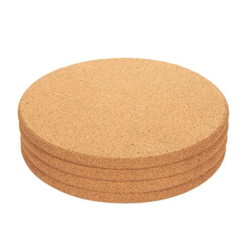 4-Pack Cork Trivet Set - Round Corkboard Placemats Kitchen Hot Pads for Hot Pots, Pans, and Kettles, 9 x 9 x 0.5 Inches