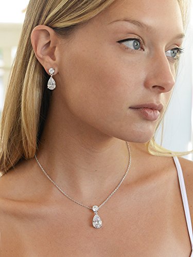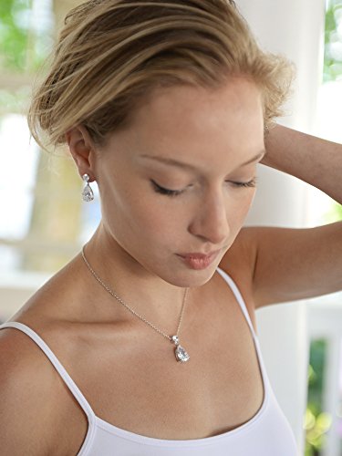 Make your grand entrance unforgettable in this best-selling necklace set by Mariell. Get ready to light up the room in our brilliant teardrop necklace and earrings set ablaze with the finest quality AAAAA grade Cubic Zirconia. The CZ gems are precision cut into the timeless beauty of classic round-cut and pear-shaped teardrops meticulously prong-set in Genuine Silver Platinum Rhodium. This gleaming matching jewelry set will add the perfect finish to bridal or wedding gowns, bridesmaids dresses or any special occasion frock. We love the "dress up or dress-down" versatility of this fabulous jewelry set. After your formal attire is neatly tucked back in the closet, enjoy this set to jazz up your business attire or add a splash of bling to your favorite sweater and jeans. Wear the necklace or the earrings alone when you want the subtle sophistication of just a single piece of jewelry with that look of real diamonds. We promise you'll love this glamorous statement set or your money-back. Treat yourself or someone you love to some seriously gorgeous sparkle. Lifetime Guaranteed.Feature