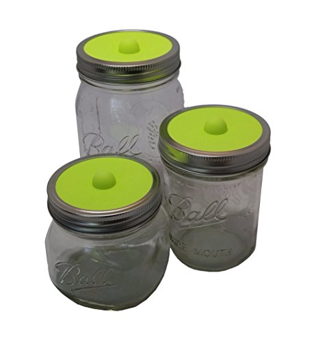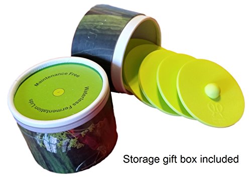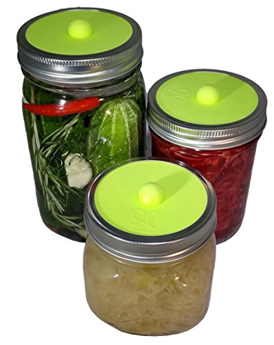Maintenance free silicone airlock waterless fermentation lids for wide mouth mason jars. BPA free, mold free, dishwasher safe. 5 pack. Premium Presents brand.