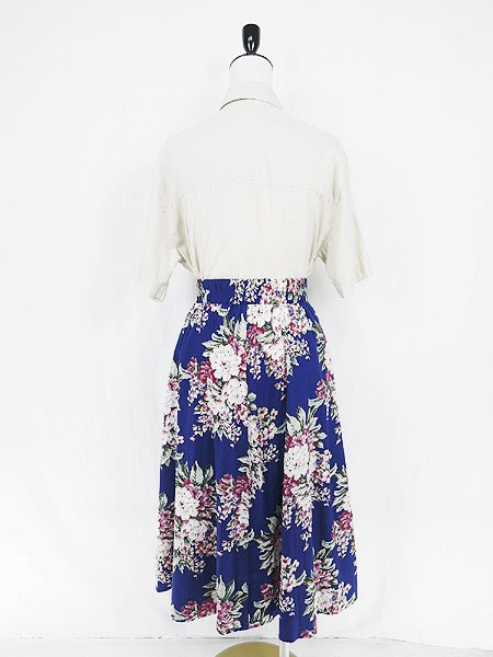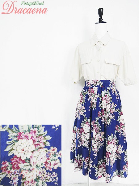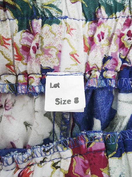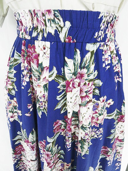 Ladies ブランド- カラー青ベース メール便不可 コンディション★★★ 素材記載なし 表記サイズ8 スタッフコメント前、右膝付近に青い色移りヨゴレあり。裏地なし 実寸サイズ 着丈 75 cm ウエスト 64cm 〜 78cm (25インチ〜31インチ) ※ウエスト・ヒップ以外は平置き採寸