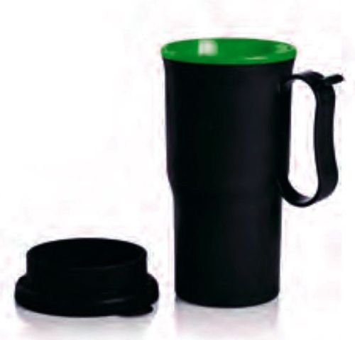 -. Feature : Tupperware Insulated Commuter Mug with Handle Black 13oz / Green interior of the mug / Keeps drinks warm or cold when on the go / Dimension Approximately 3" x 6.5" (Dia. x H)