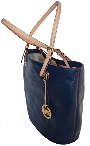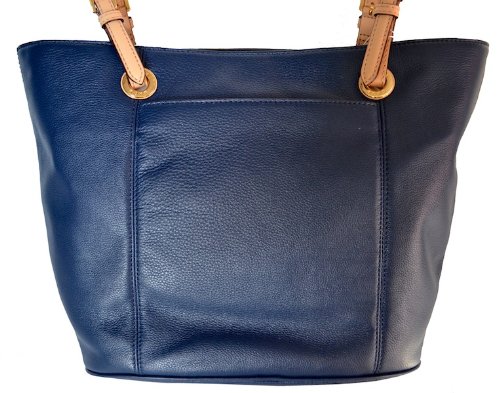 -. Binding : Apparel -. Brand : -. ClothingSize : Large -. Color : Navy -. Department : womens -. EAN : 0887042155468 -. Feature : Authentic Navy Leather with Tan Leather Trim / 10.5" Drop Double Leather Straps with Hangtag / Measures : 12" B / 16" T (L) x 11.5" (H) x 5.5" (D) / Magnatic Snap Closure. Back Slip Pocket / signature lining with one zippocket & 4 slip pockets -. ProductGroup : Shoes -. ProductTypeName : SHOES -. Size : Large -. Title : Jet Set Item Genuine Leather Large Tote Shoulder Bag Purse (Navy) -. UPC : 887042155468