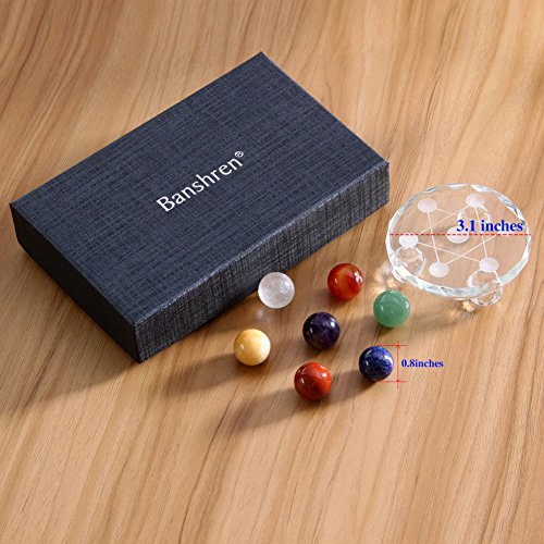 Studio : Barshren Publisher : Barshren Binding : Kitchen Product Description Your 7 chakras frequently need to be balanced and tended to, which is why we have designed this all-in-one healing crystal set! Each healing crystal ball set includes 7 gemstone orbs, one for each chakra. (Amethyst = Crown, Lapis = Heart, Red Jasper = Sacral, Yellow Japser = Root, Green Aventurine = Solar Plexus, Quartz Crystal = Throat Carnelian = Third Eye). Since you'll of course need a way to store and display your new chakra crystal balls, this set comes with a slabbed base carved out of glass. It acts as a charger, leaving your crystals free of bad vibes or pent up energy and full of healing powers.These gift boxed crystal sets with stands are selling out fast. Don't miss out! 0