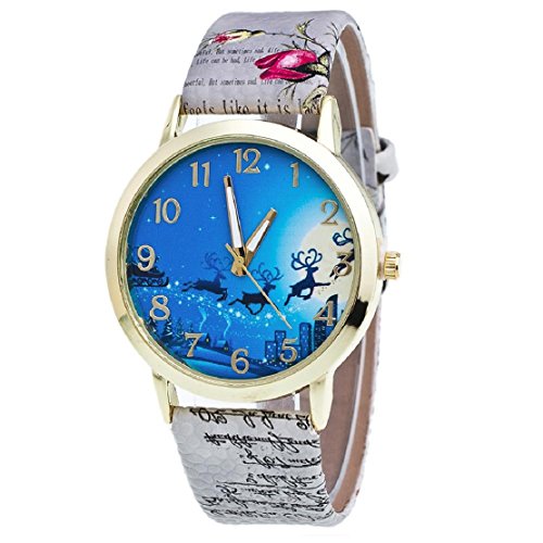 -. Title : Damen Uhr, OverDose Christmas Weihnachten Ältere und Baum-Muster-Leder-Band-Analog-Quarz-Mode-Uhren (Grau)