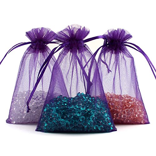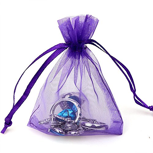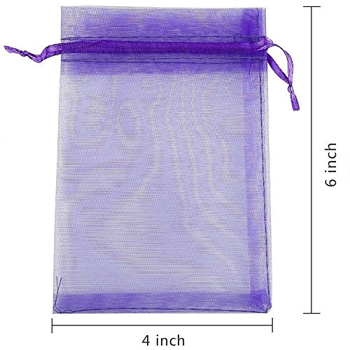 ECVILLA 100pcs 4x6 inch Organza Bags - Sheer Drawstring Organza Jewelry Pouches Wedding Party Favor Bags (Purple)