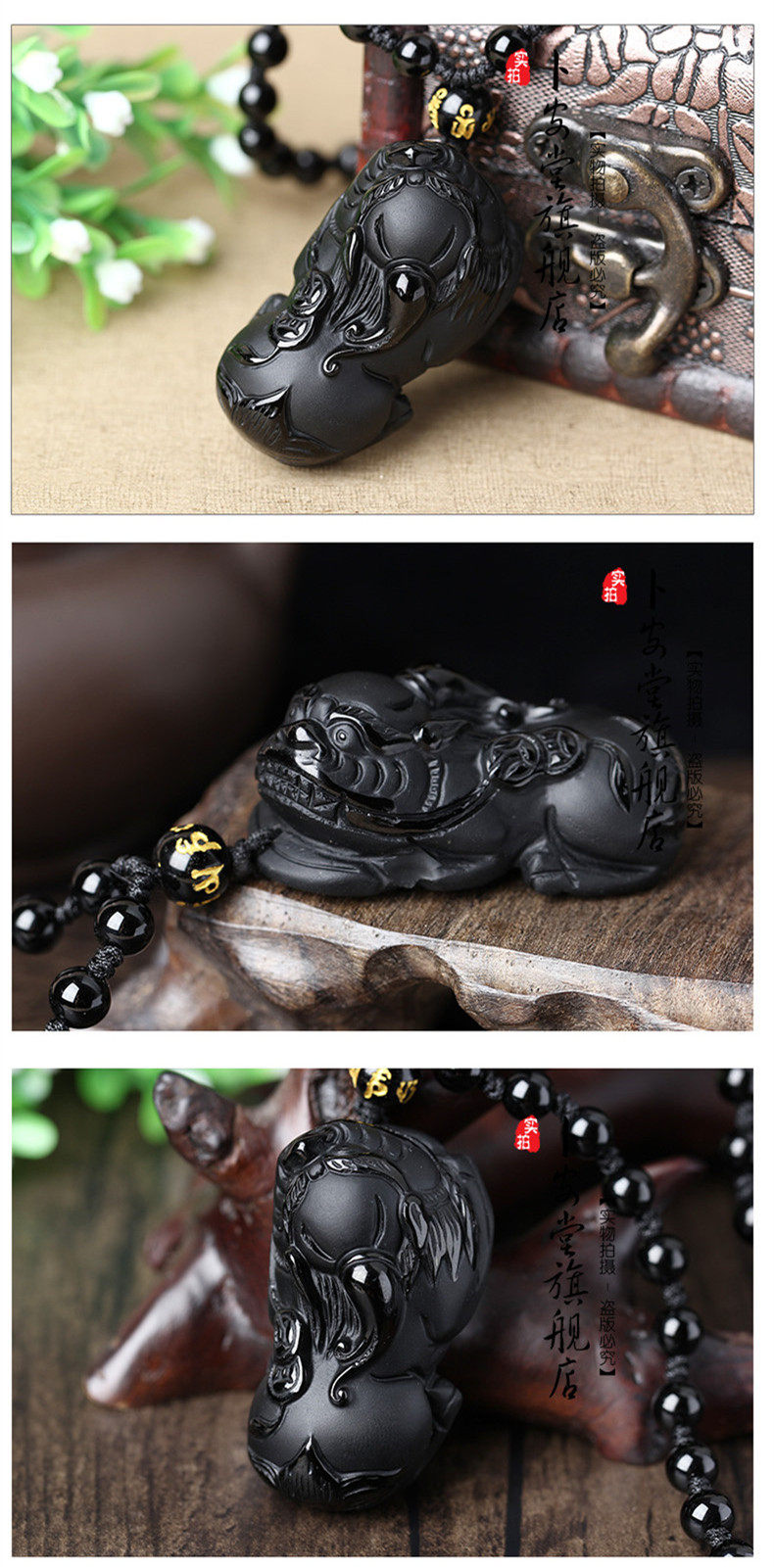 开光天然磨砂黑曜石财霸王貔貅大屁股貔貅运吊坠