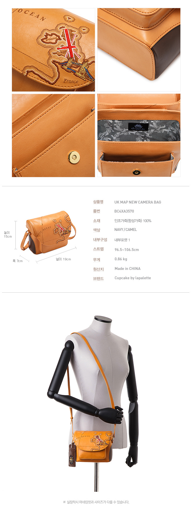 素材:人工皮革100% サイズ(cm): 横19×縦15×マチ7×ストラップ96.5~106.5 カラー:ネイビー、キャメル 重量(kg): 0.86 * 内部ポケット1 * お客様のパソコン、モニターの環境によって 実際とは多少色合いなどが異なることがござい ますので予めご了承下さい。 * サイズは概寸です。測定方法や素材により多少誤差が生じる場合があります。